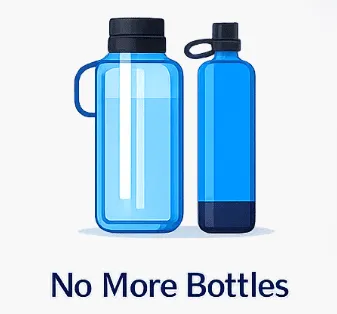 A Reverse-Osmosis system provides unlimited purified water, eliminates the heavy bottle deliveries, require no storage space, reduce plastic waste, and costs less. Plus, you never run out of fresh clean water and never have to wait for delivery.